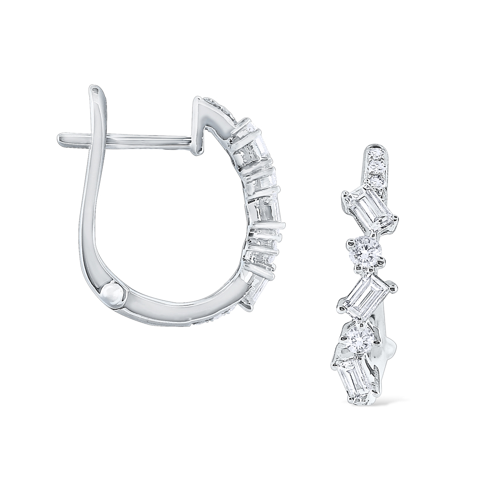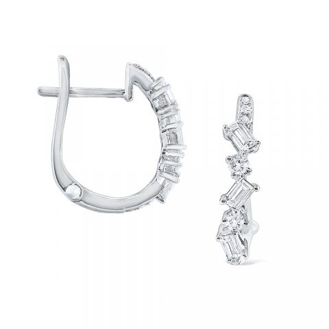 Baguette and round diamonds hug the small curve of these mini hoop earrings giving a dazzling touch to your everyday mini hoop.