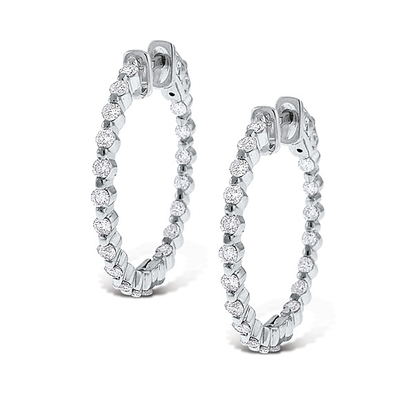 Diamond Inside Outside Hoop Earrings in 14k White Gold with 38 Diamonds weighing 1.15ct tw.