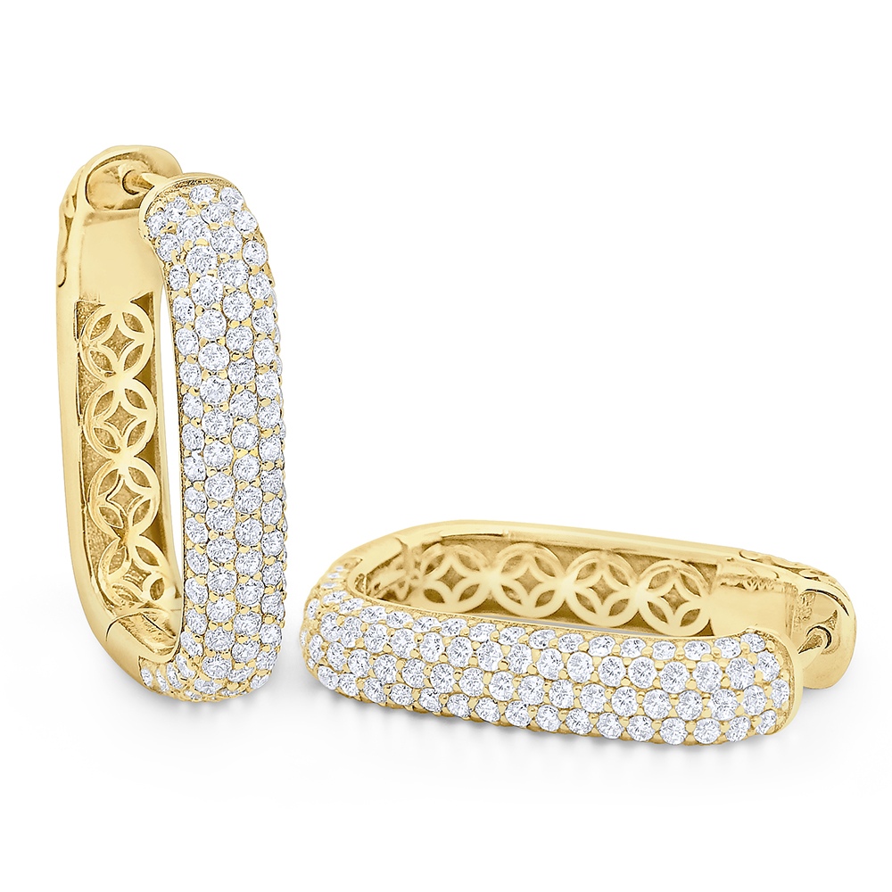 14k Gold and Diamond Rectangle Statement Hoops