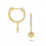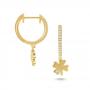 Good vibes sparkle bright! Golden hamsas dangle freely below small diamond huggies. Perfect for everyday.