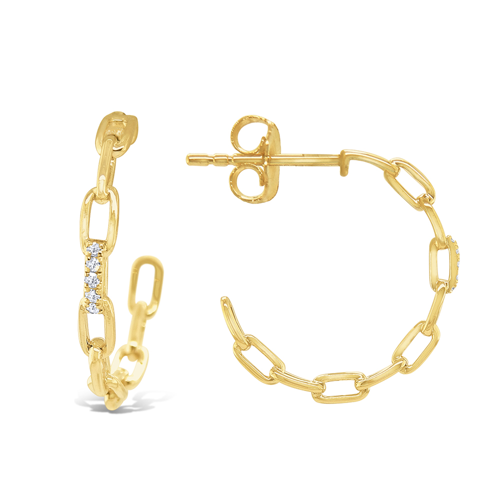 A great new addition to The New Hoop Collection. These golden chain link hoop earrings are the perfect addition to your ear party and right on trend. Pair them up with any of our paperclip chain necklaces to complete the look.