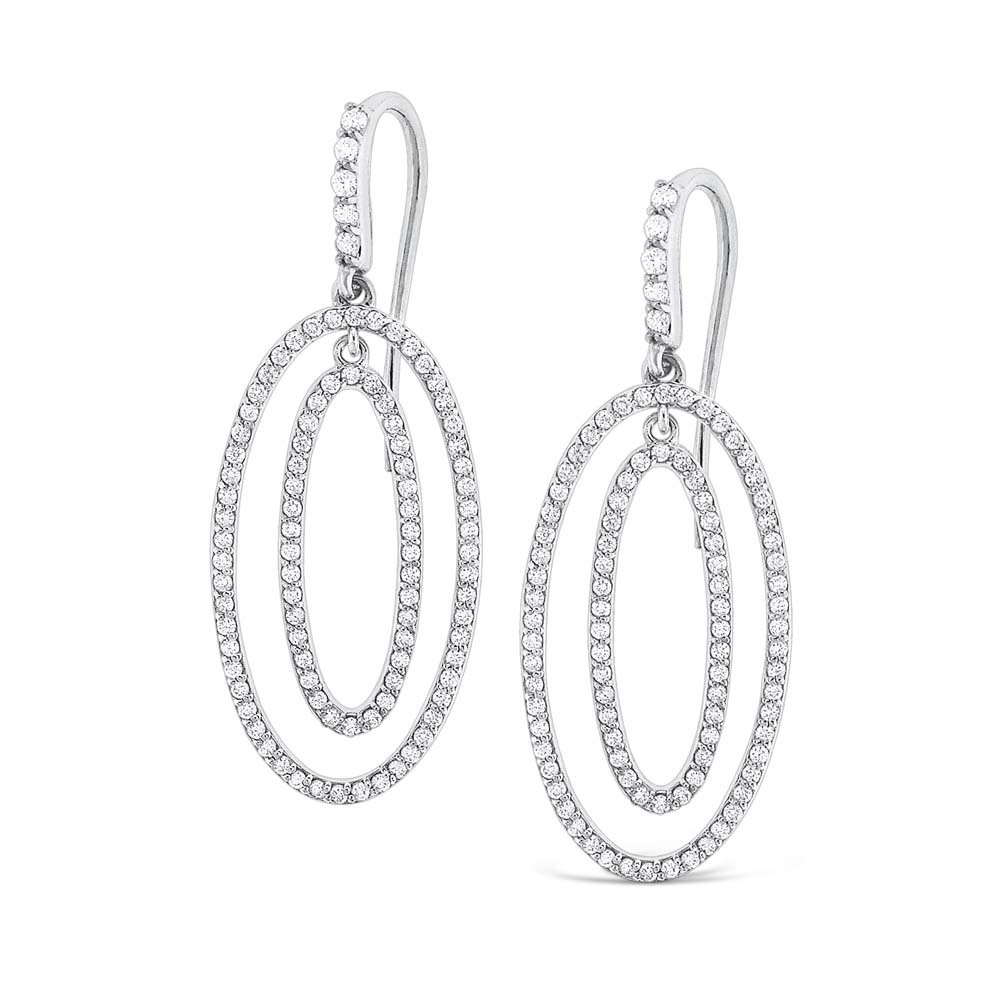 Diamond Double Oval Drop Earrings in 14K White Gold with 190 Diamonds Weighing 2.03 ct tw