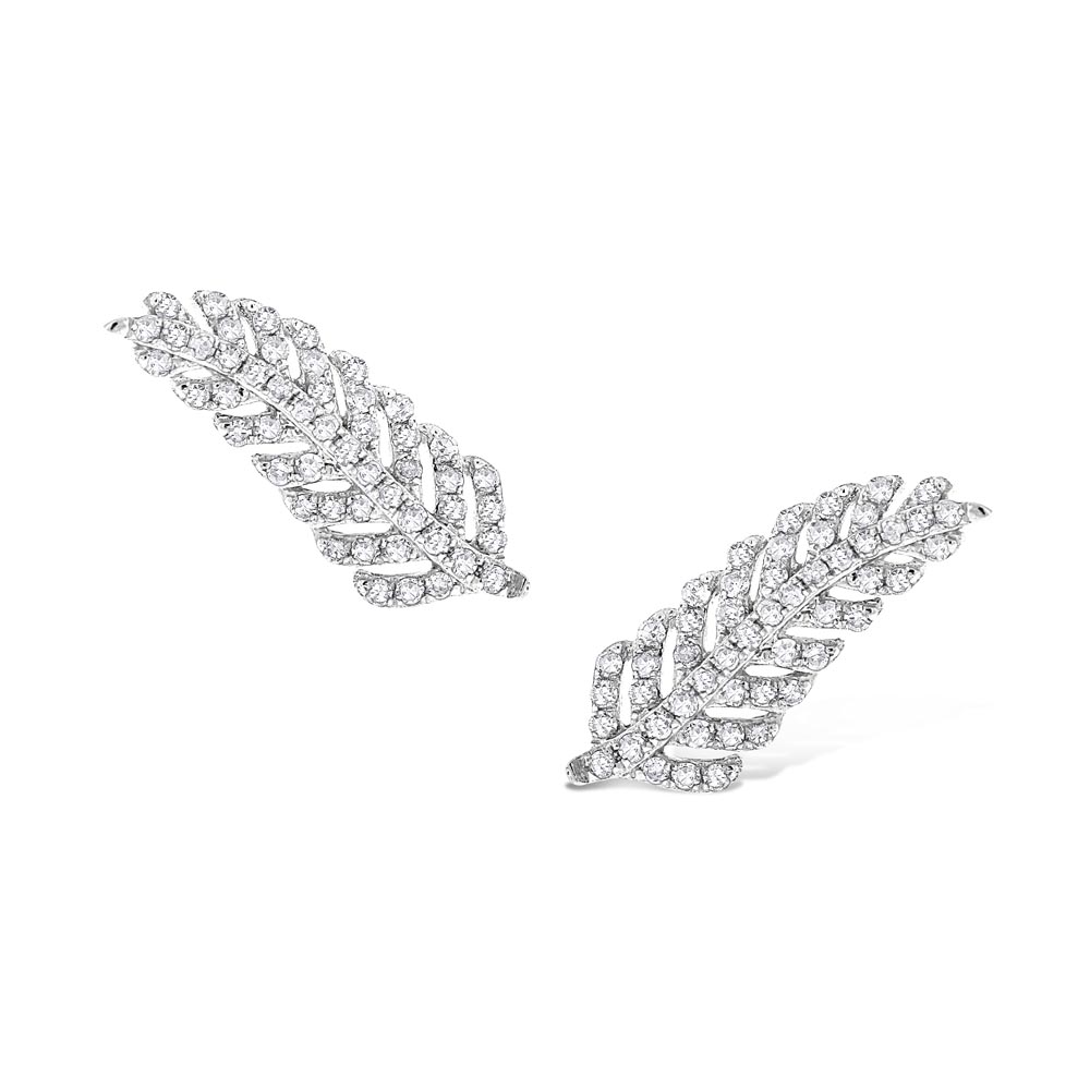 Diamond Feather Earrings in 14K White Gold with 102 Diamonds Weighing .34 ct tw