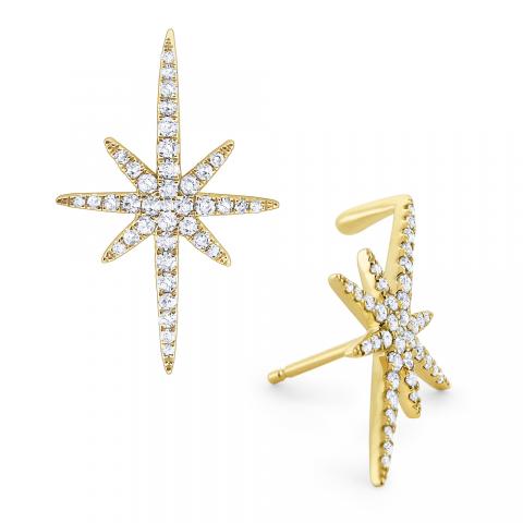 Diamond Starburst Cliffhanger Earrings Set in 14 Kt. Gold