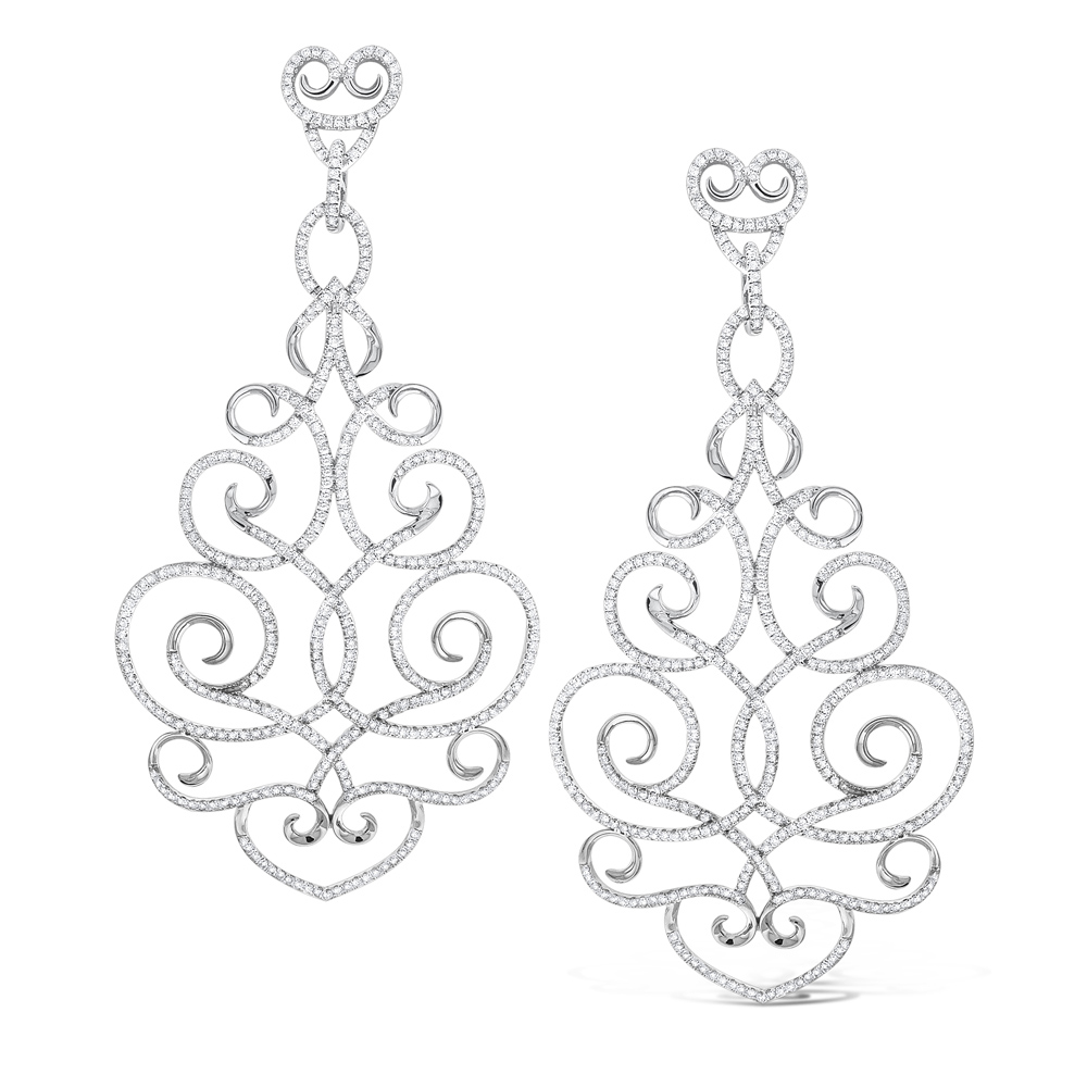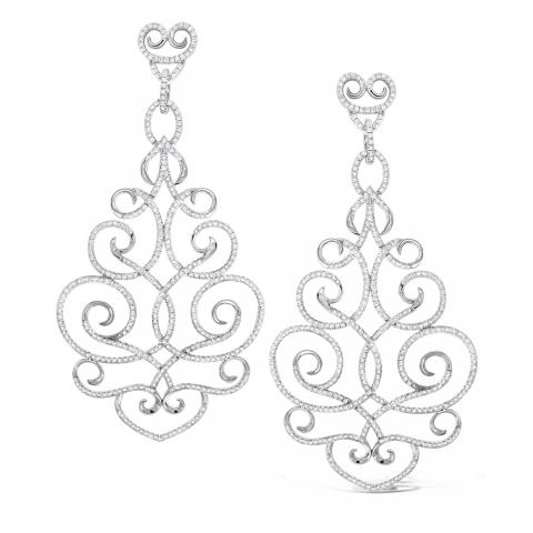 Diamond Large Swirl Earrings in 14K White Gold with 792 Diamonds Weighing 2.38 ct tw
