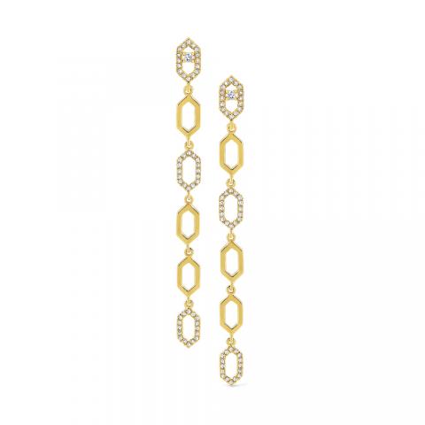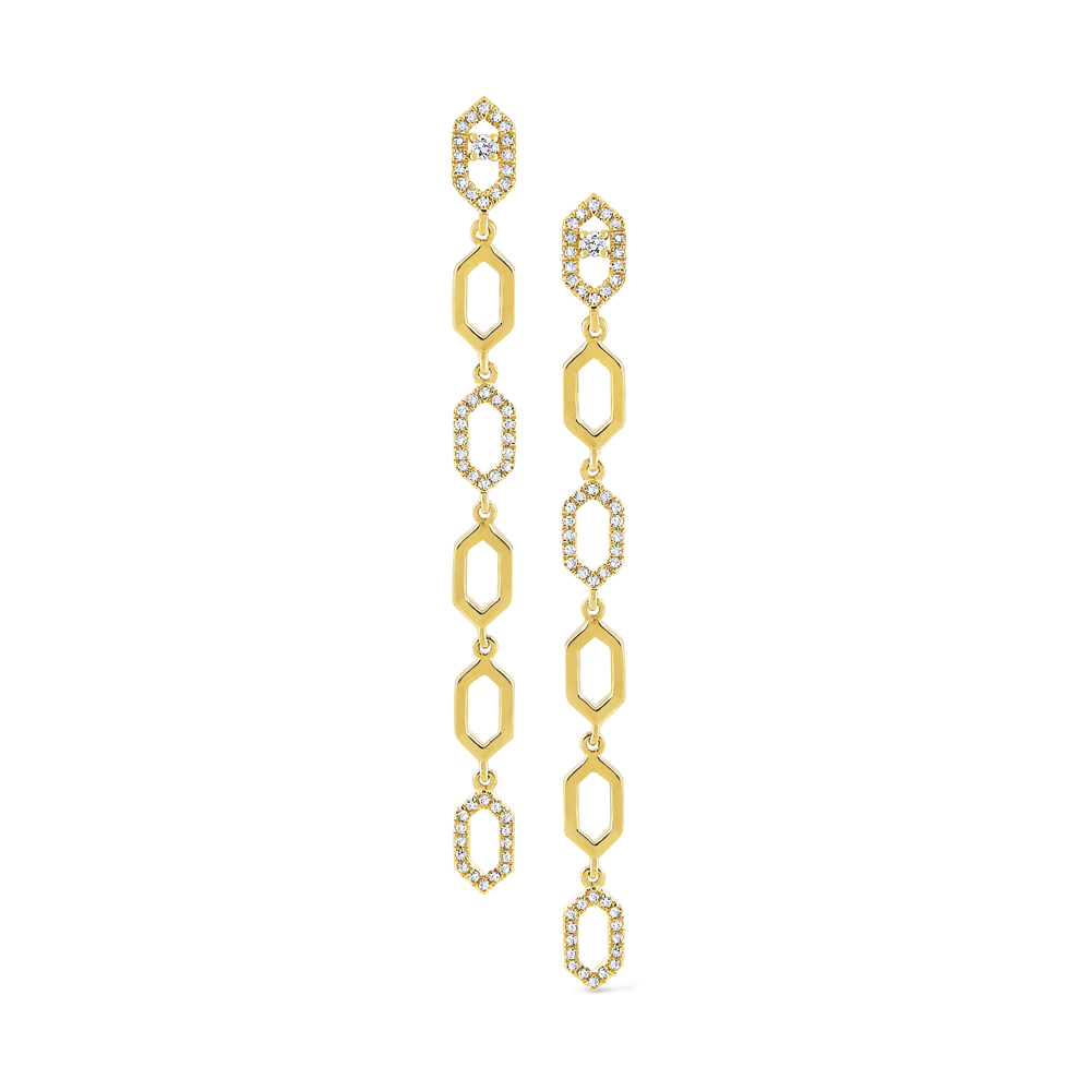 Make a statement with these buzzworthy earrings. Octagonal honeycomb shapes dangle from the ear in a line, with diamond accents that add eye-catching sparkle.