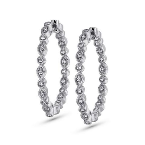 Diamond Inside Outside Hoop Earrings in 14k White Gold with 42 Diamonds weighing .34ct tw.