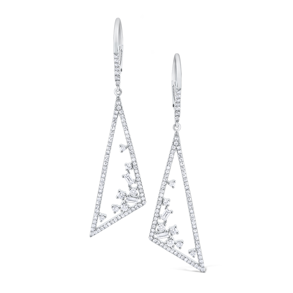 Diamond Triangular Mosaic Earrings Set in 14K White Gold