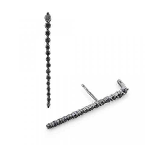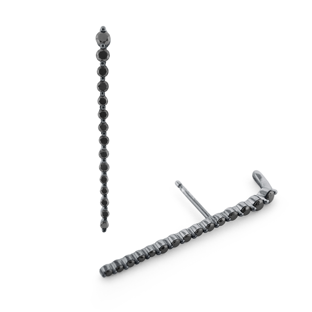 Want to know the next big trend in jewelry? 30 round brilliant black diamonds grace these linear earrings to add a sophisticated edge to your trendsetting style. Wear these earrings to work or a night out to highlight your chic appeal. Designed with a useful bar to hook into your ear, so it sits straight and secure, without compromising fashion.