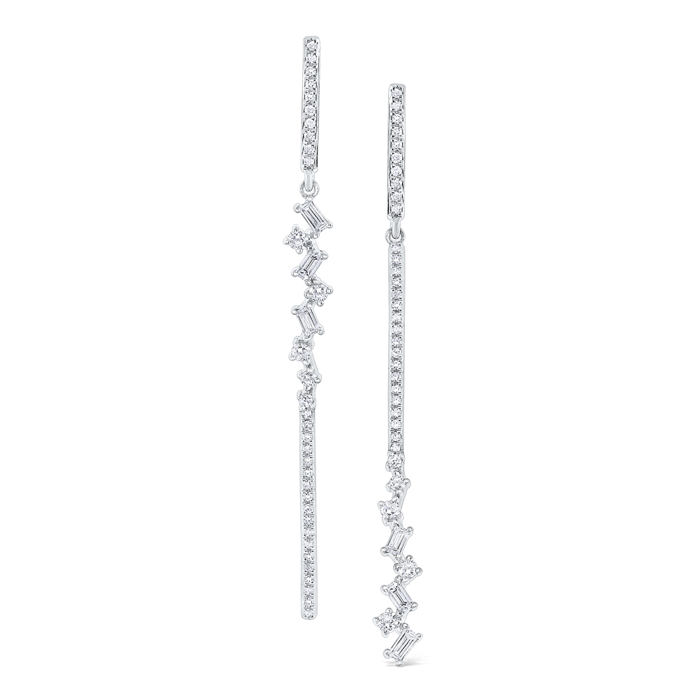 Show off your chic sense of style with these asymmetrical earrings! Part of KC Designs Mosaic Collection, round brilliant & baguette diamonds play off each other in elegant lines that swing naturally from your ear.