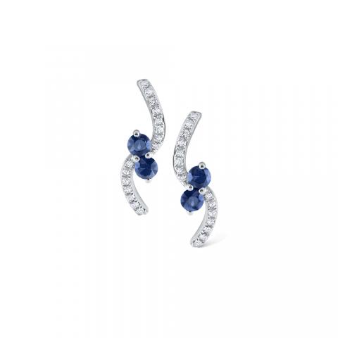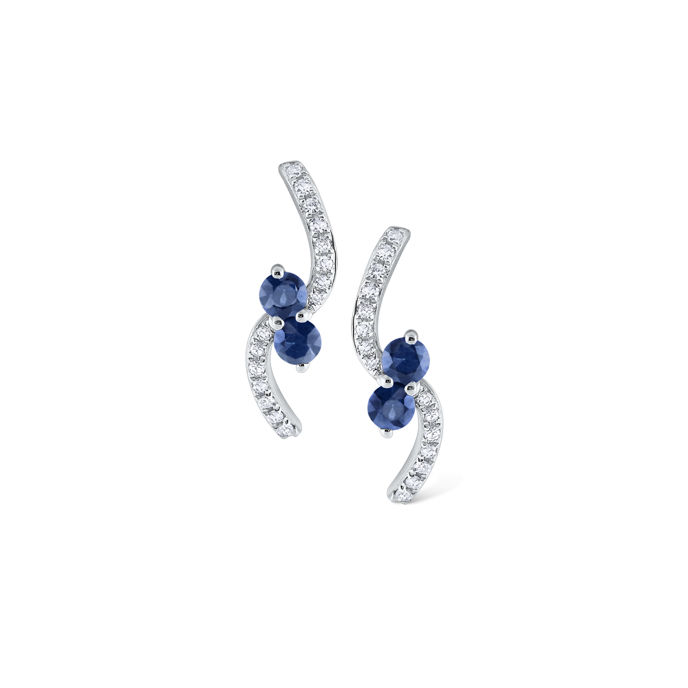 Blue Sapphire & Diamond Curve Earrings Set in 14 Kt. Gold
