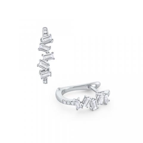 Featured in KC Designs Mosaic Collection, the sparkling round brilliant & baguette diamonds offer an edgy twist on traditional mini hoops. These beautiful earrings have a very original setting that will make them stand out from the rest and will garner a lot of compliments.