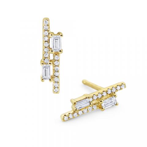 Linear Mosaic Diamond Stud Earrings Set in 14 Kt. Gold