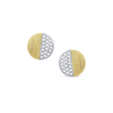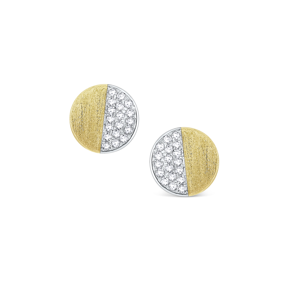 Light up the room with these modern & chic studs! Sparkling pavé diamonds & soft 14 Kt. brushed gold add an understated, elegant shine that can be worn with any ensemble.