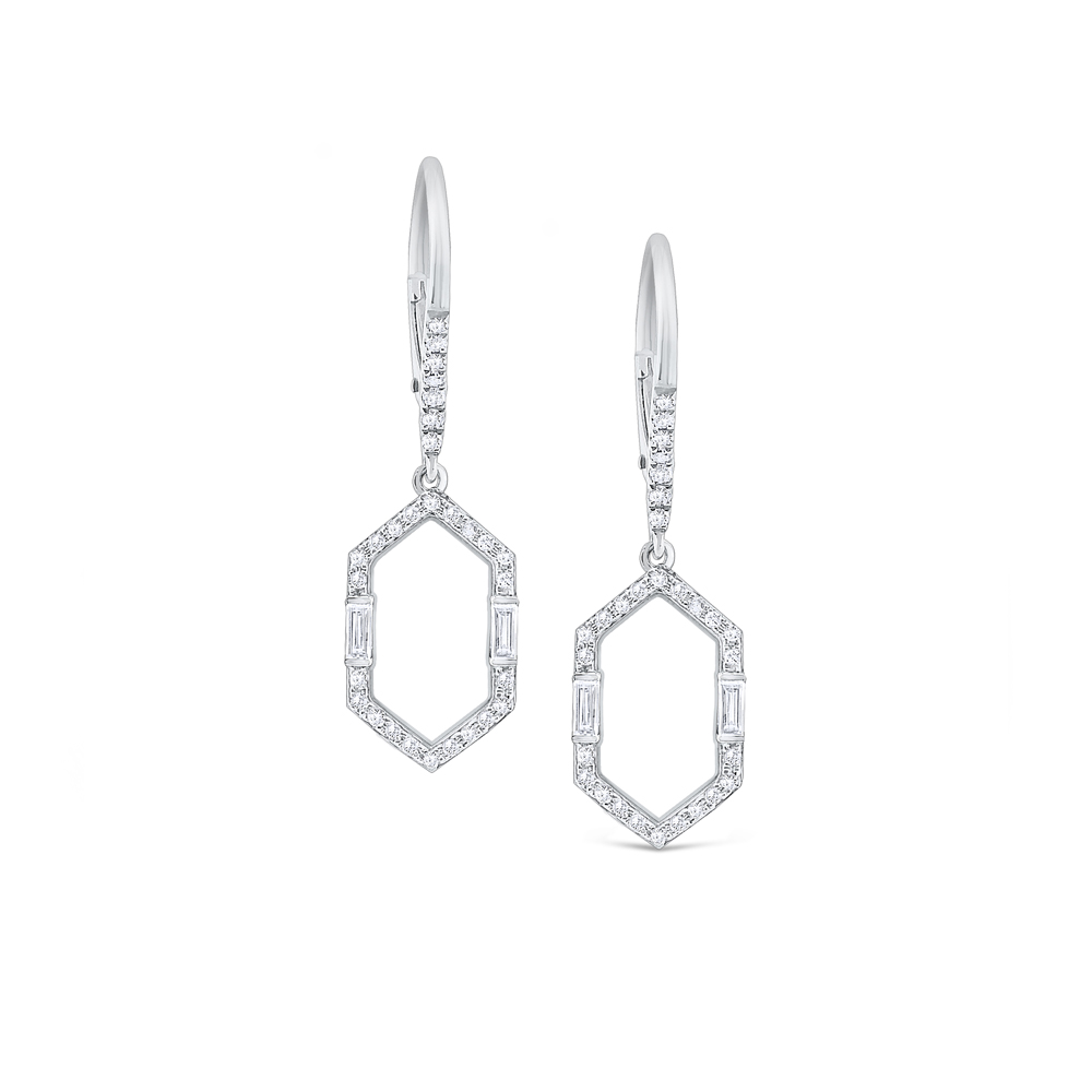 Let the beauty of diamonds influenced by ancient stone patterns transport your style! Part of KC Designs Mosaic Collection, round brilliant diamonds line the chic open-worked frame shape, while glittering baguette diamonds highlight the geometric look.
