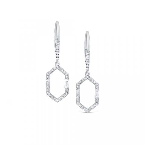 Diamond Mosaic Geometric Frame Earrings Set in 14 Kt. Gold
