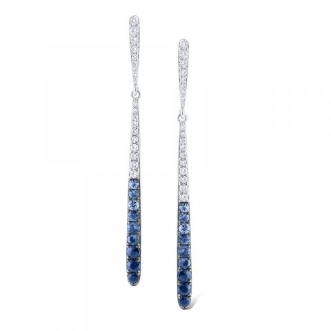 Blue Ombré Sapphire & Diamond Line Earrings Set in 14 Kt. Gold