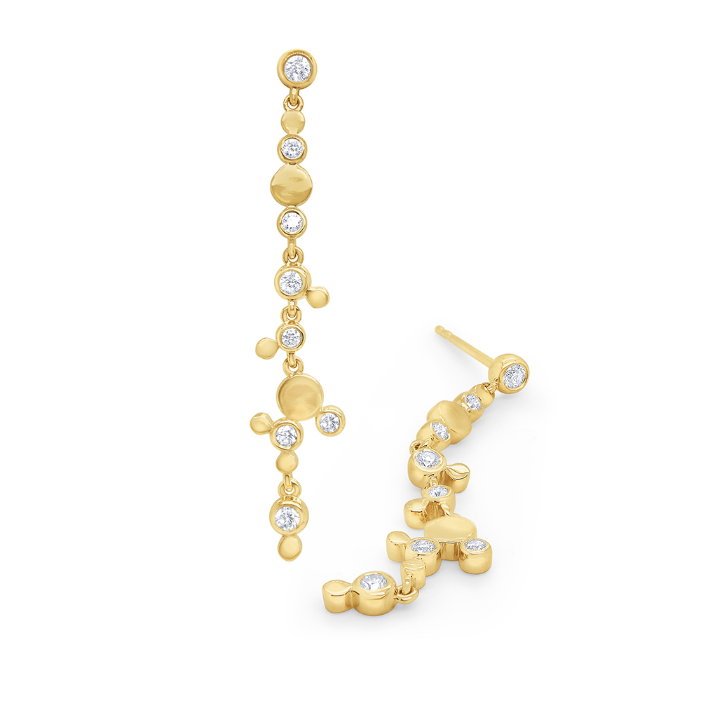 Multple circles dangle and swing with just the right amount of sparkle. SImply perfect for every day wear.
