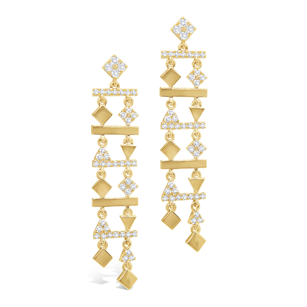 Diamond geometric shapes make up these modern trending earrigns that swing playfully as you move. Charming!