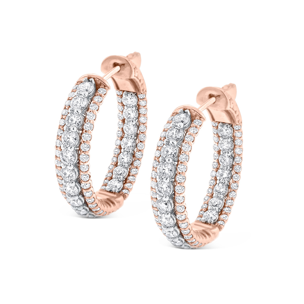 Show stopping diamond hoops dazzle in white and rose gold.