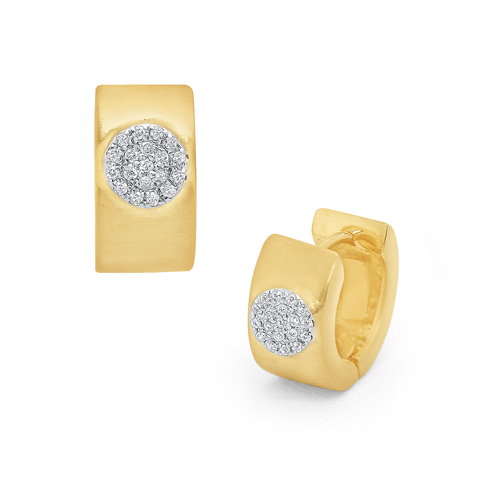 A simple pave circle is set into bold 14k gold hoops. A simple mod look for everyday.