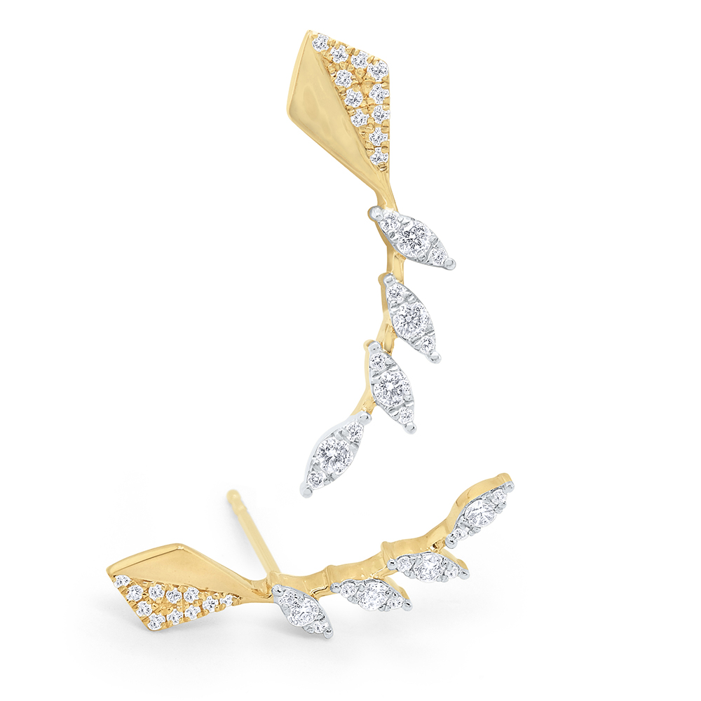 Golden kites with diamond tails can be worn up or down on teh earlobe or higher up the ear.