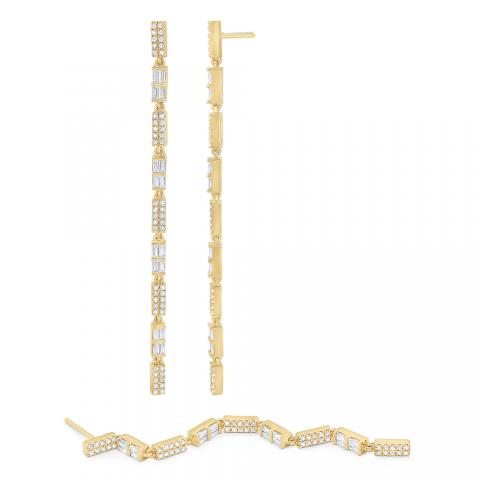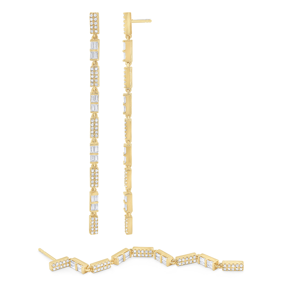 Round and diamond baguettes shine in these simple but stunning flexible line earrrigns.