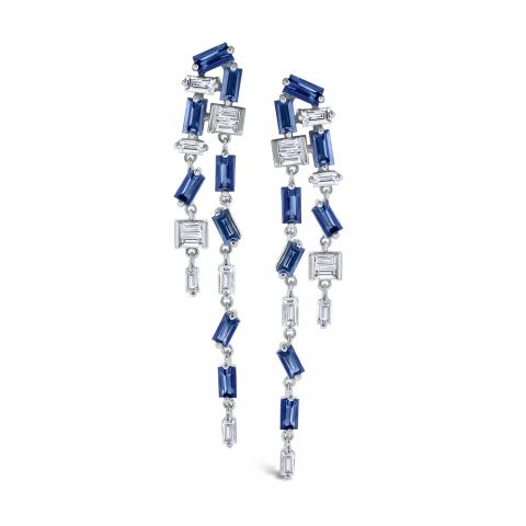 Light up your look with these colorful & chic Modern Stiletto earrings. Cerulean blue sapphires & sparkling diamonds stagger down from the ear in a drippy fashion. Featured in KC Designs Everyday Color Collection, these earrings are sure to impress.