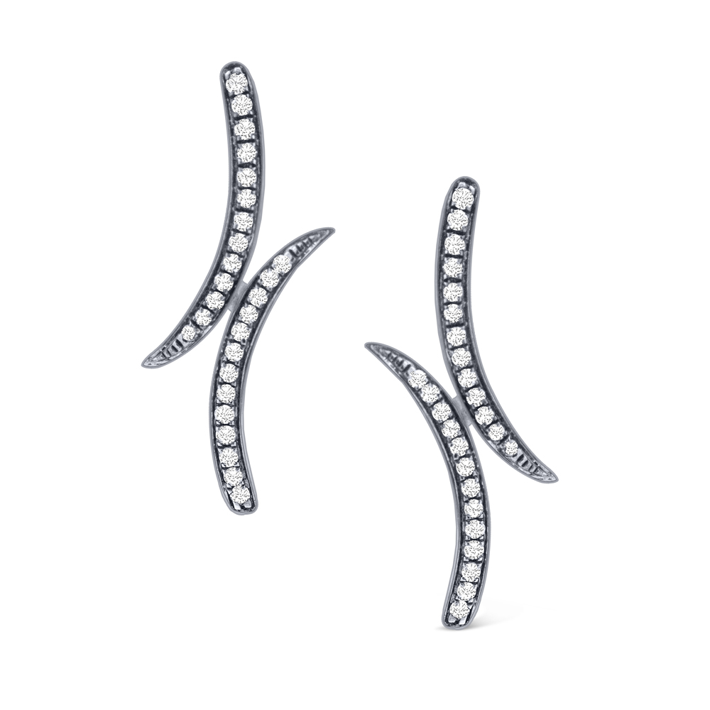 Diamond earrings that can be worn two ways - straight down or climbing up the ear for a more dramatic effect.