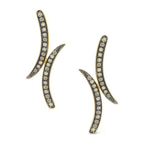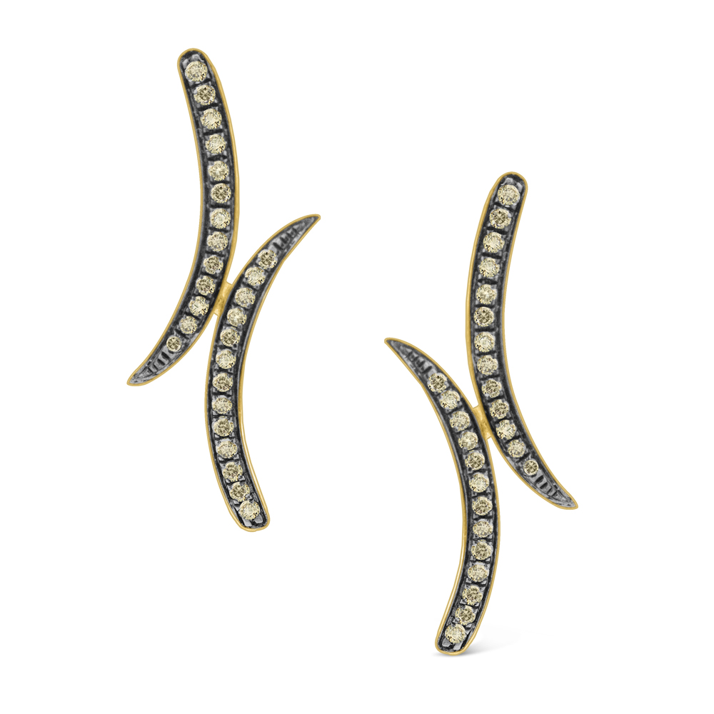 Champagne diamond earrings that can be worn two ways - straight down or climbing up the ear for a more dramatic effect.