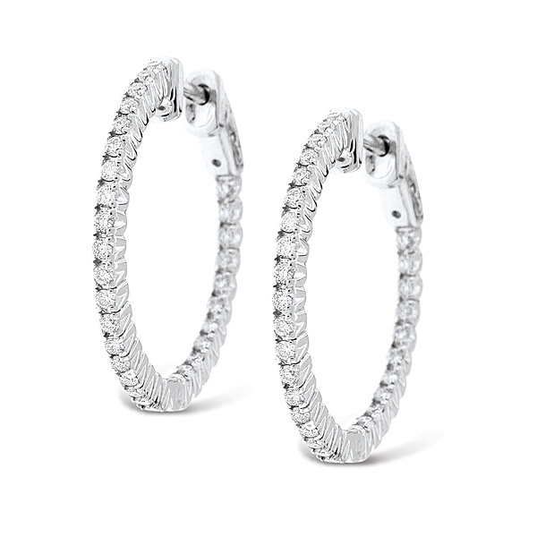 Diamond Inside Outside Hoop Earrings in 14k White Gold with 60 Diamonds weighing .75ct tw.