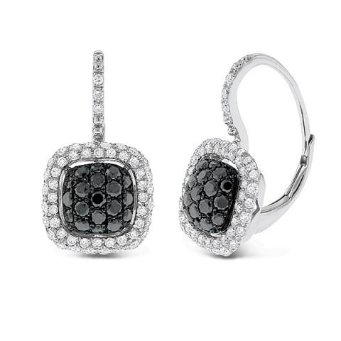 Black And White Diamond Small Cushion Earrings in 14k White Gold with 140 Diamonds weighing .78ct tw.