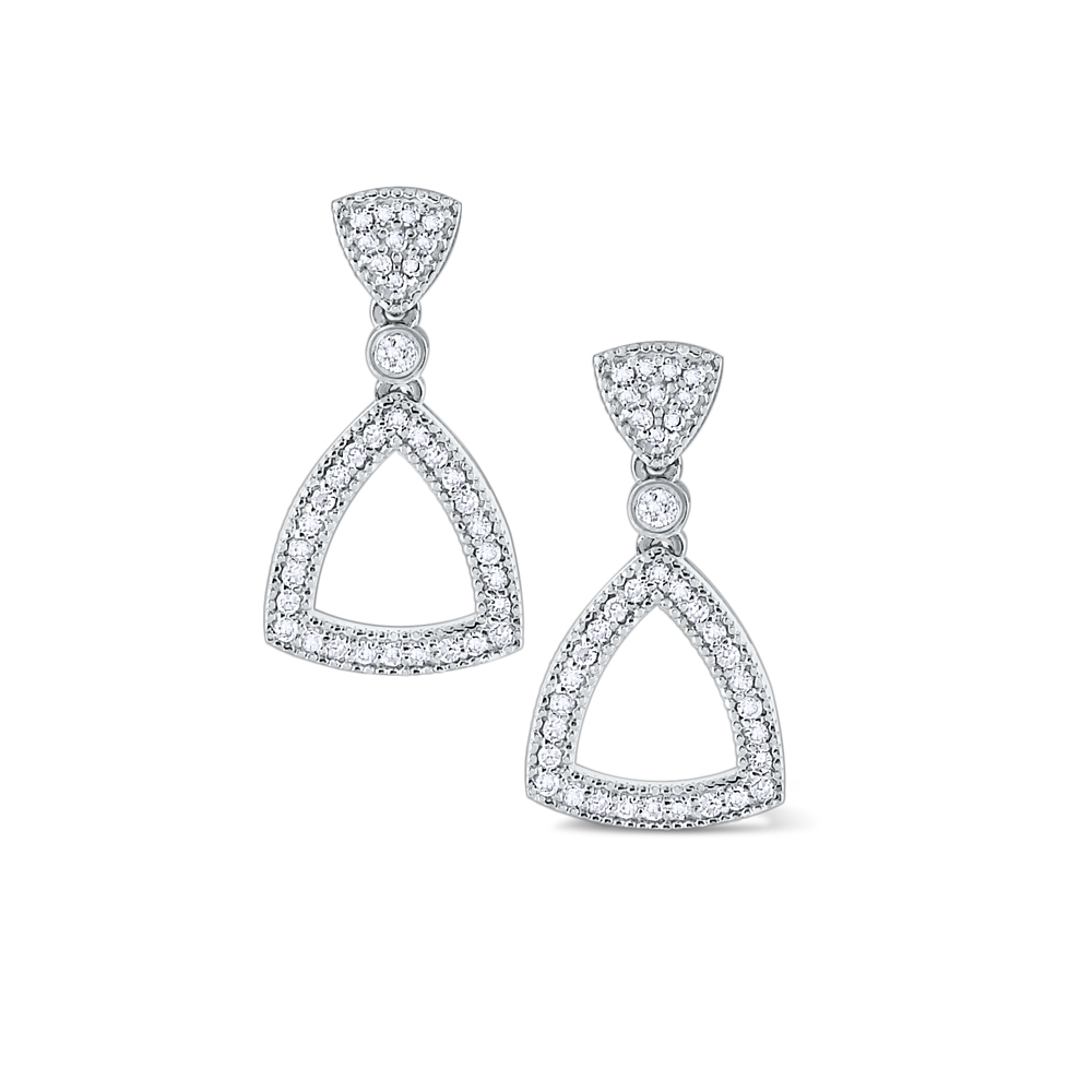 These charming triangular earrings are the perfect accessory for any look! Glittering round diamonds are aligned in an open-worked triangular shape that is sure to light up your look.