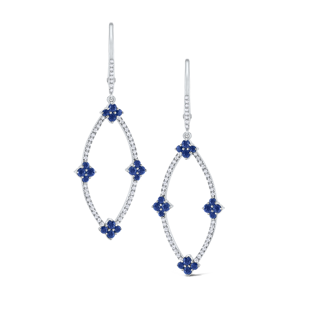 Sapphire & Diamond Marquise Frame Earrings Set in 14 Kt. Gold