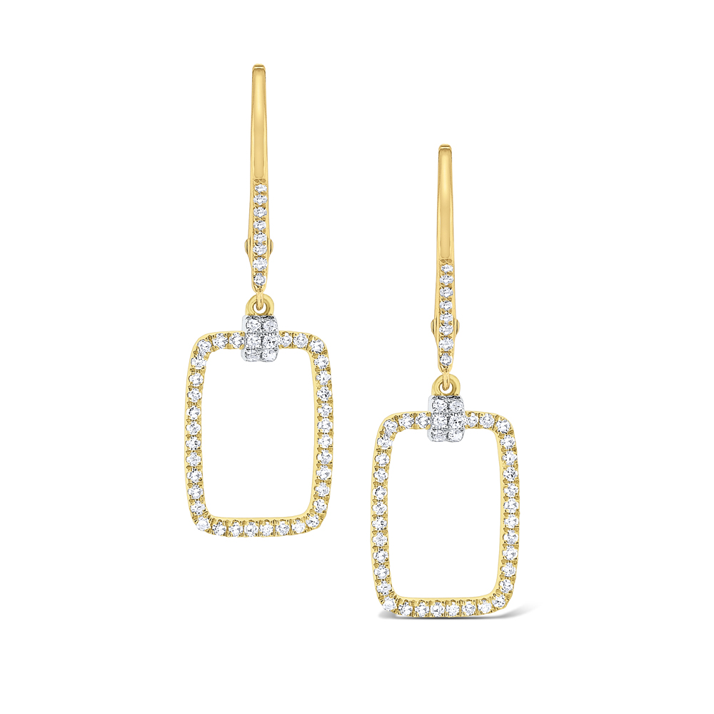 Diamond Rectangular Frame Earrings Set in 14 Kt. Gold