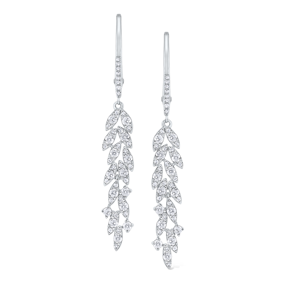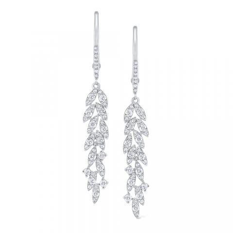 Diamond Leaf Drop Earrings Set in 14 Kt. Gold