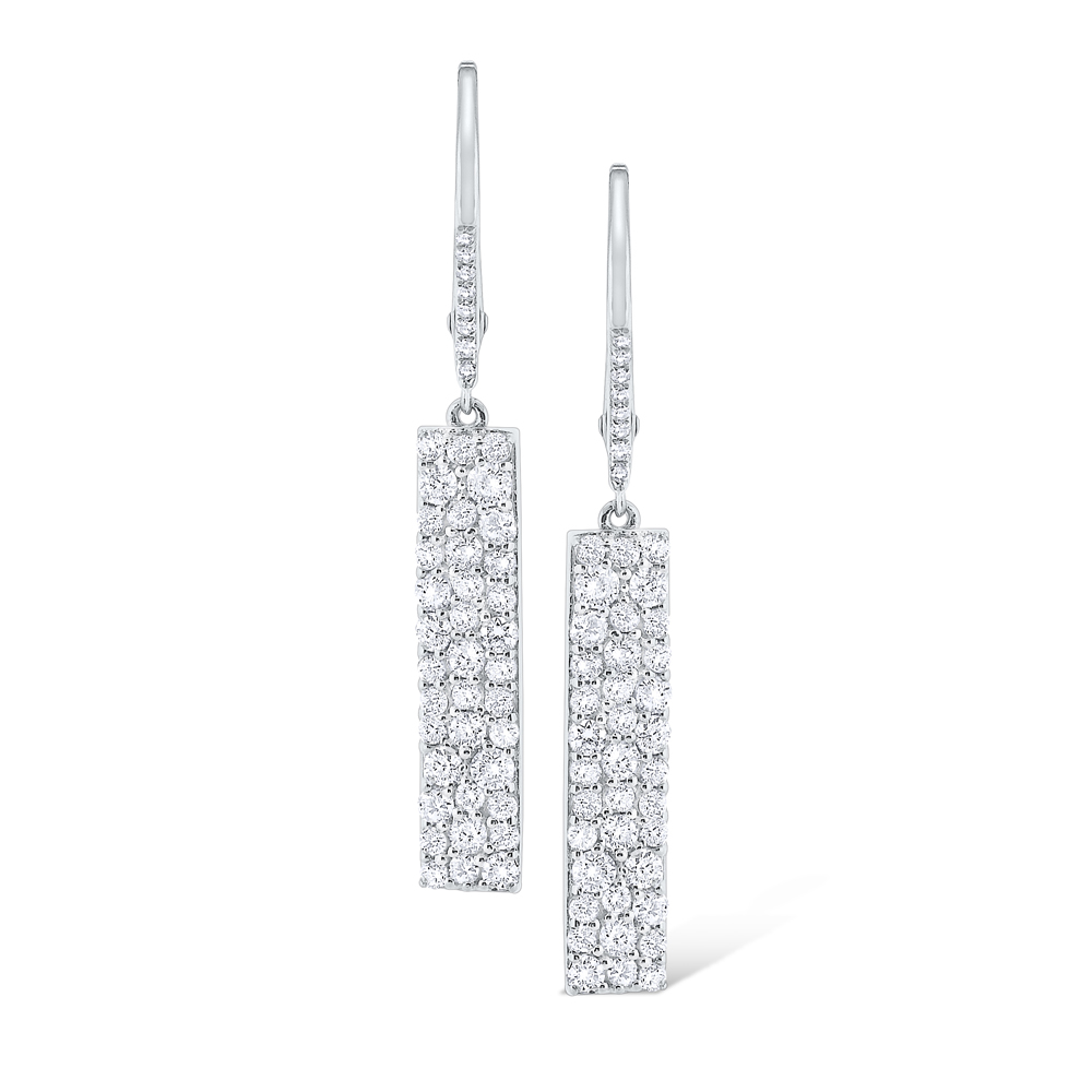 Dare to dazzle in these dangling bar drop earrings! 94 diamonds shine from chic and fun 1 3/8” rectangular bars.