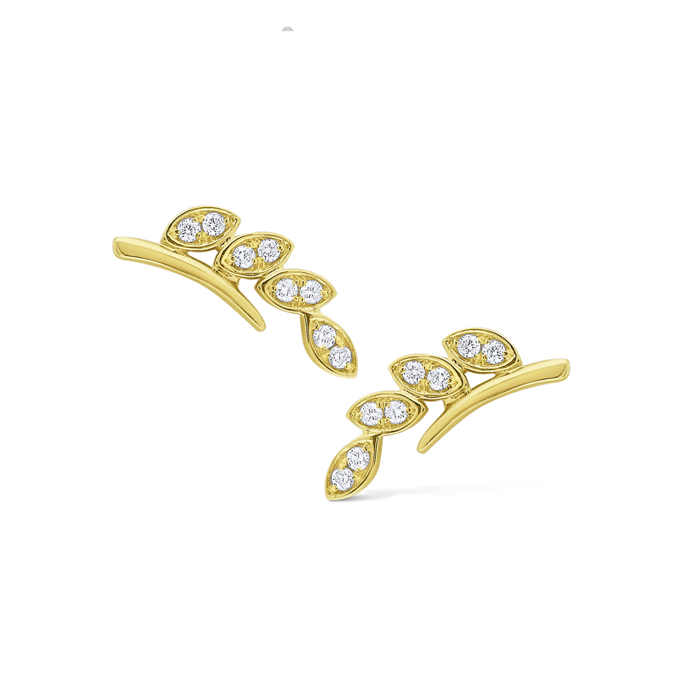 Diamond Leaf Ear Climbers Set in 14 Kt. Gold