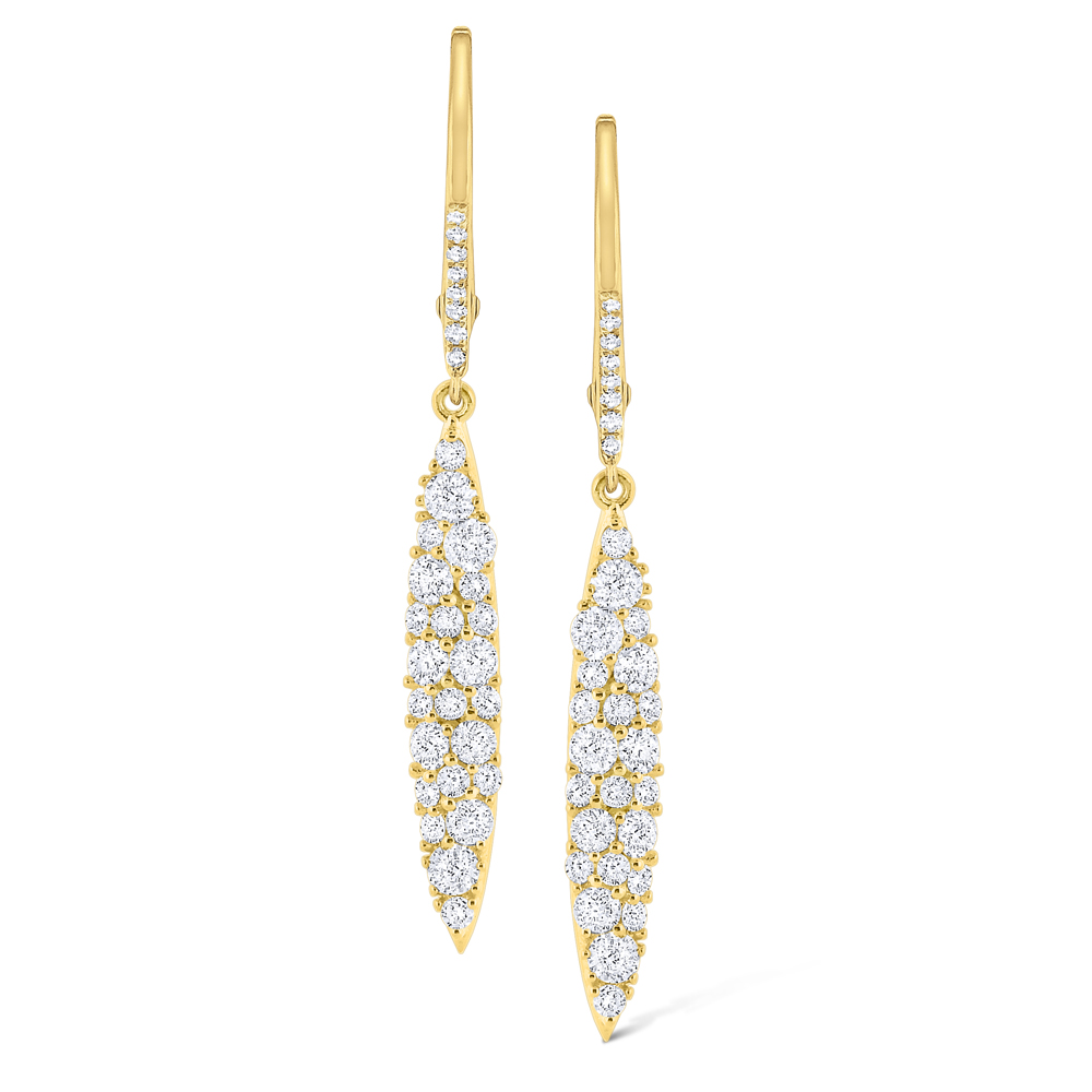 68 multiple sized diamonds hang in chic marquise shapes to create the chic look of theses gorgeous earrings. Wear them with your hair in an up-do for the perfect elegant style.