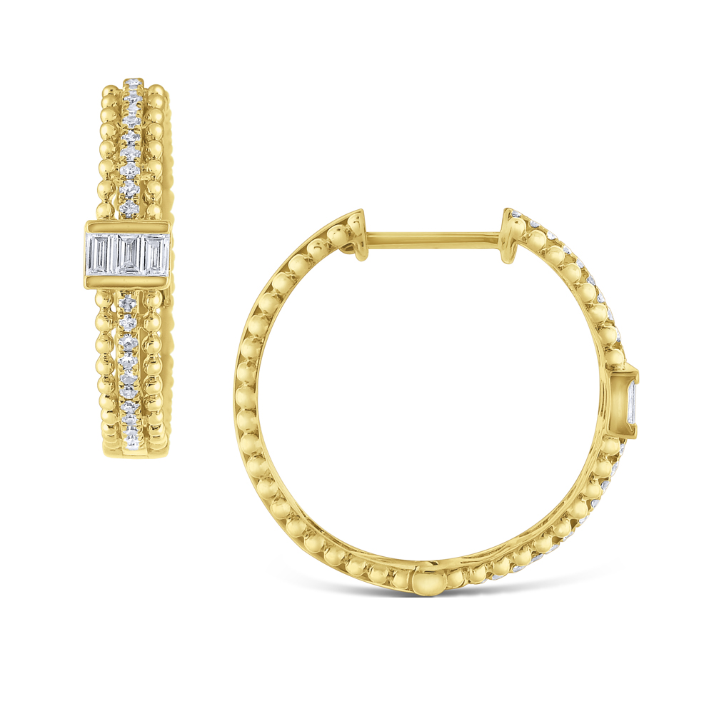 If you enjoy the look of hoop earrings, but with a playful edge, you will love these diamond hoops. Part of KC Designs Mosaic Collection, these gorgeous earrings are sure to create some smiles.