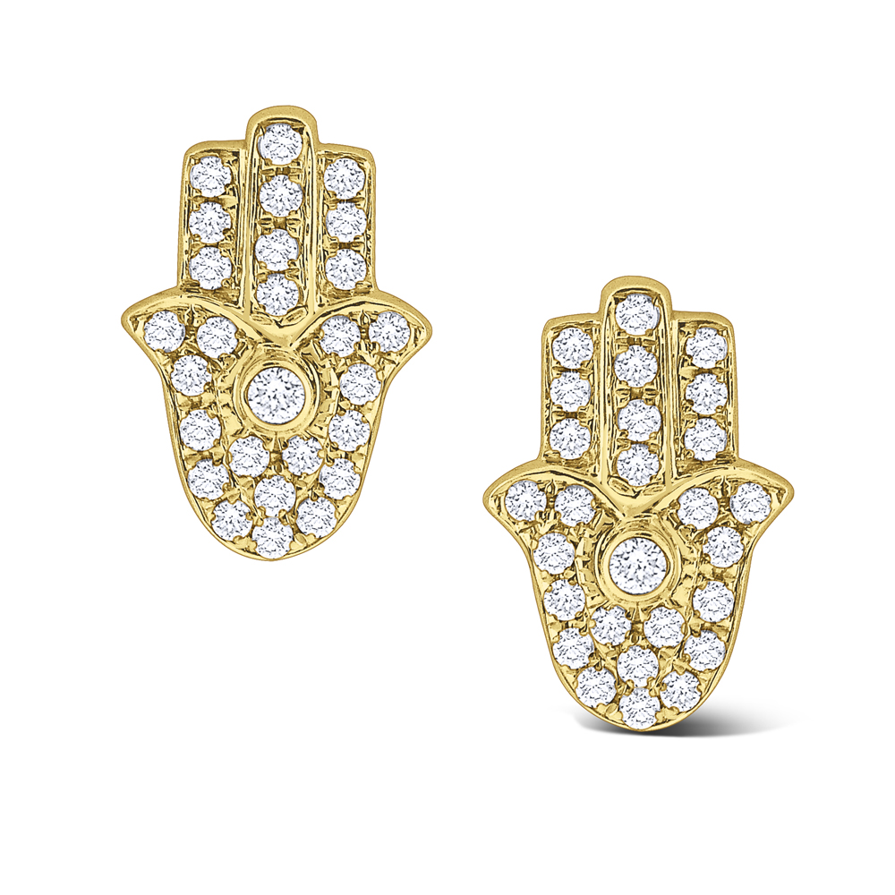 Diamond Hamsa Stud Earrings Set in 14 Kt. Gold