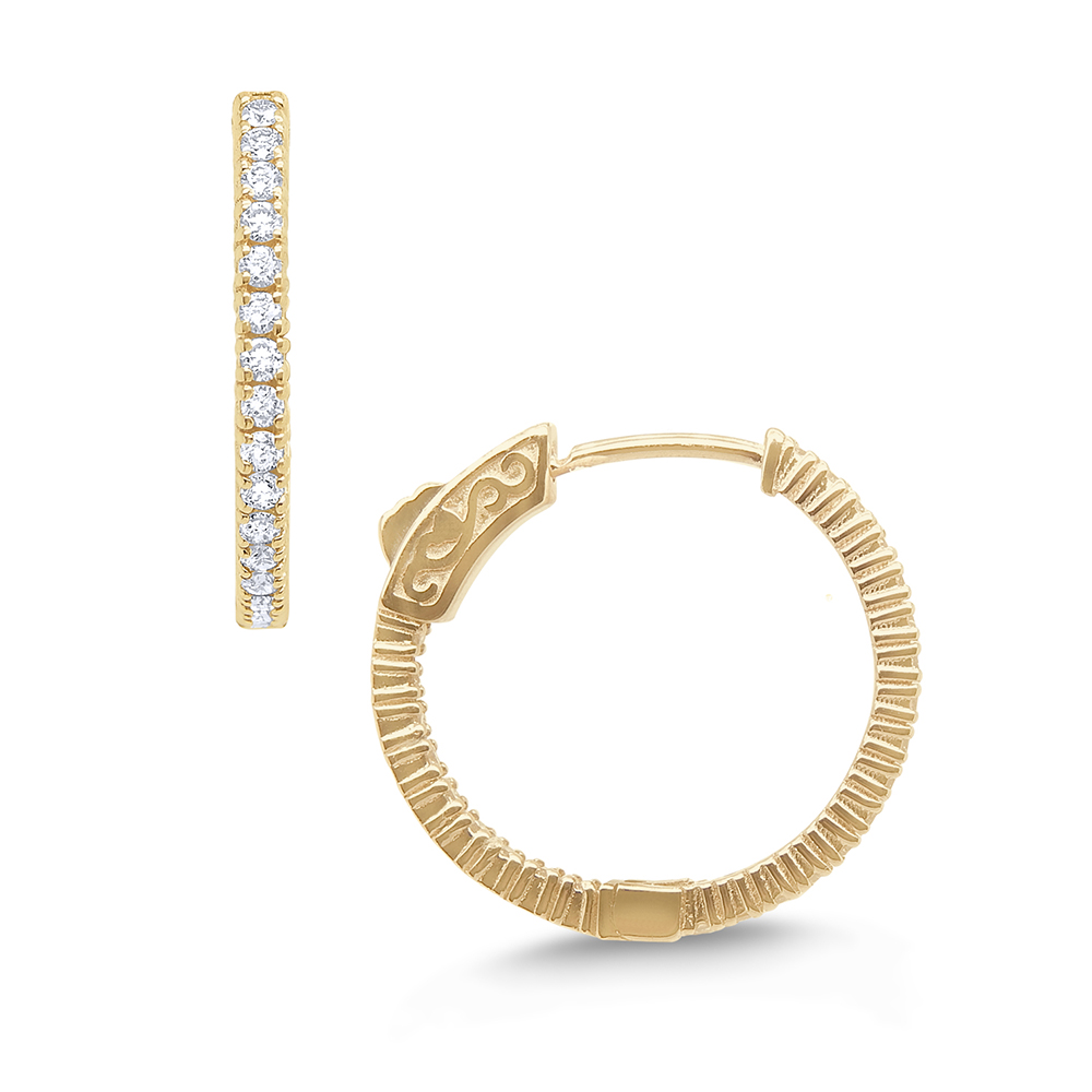 Classic hoops never go out of style. This pair features a half carat of diamonds inside and out with a smart safety catch.