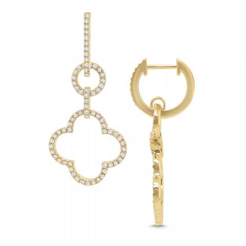 Lucky diamond clovers sparkle and shine as they swing below small diamond hoops.