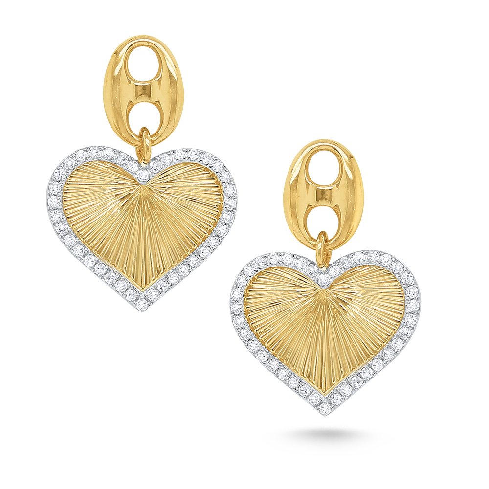 Gold and diamond sunray hearts dangle from a modern mariner link.