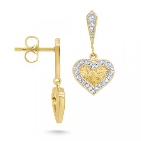 Sunrays engraved in a gold heart framed by shimmering diamonds make up these adorable earrings, perfect for everyday sparkle.