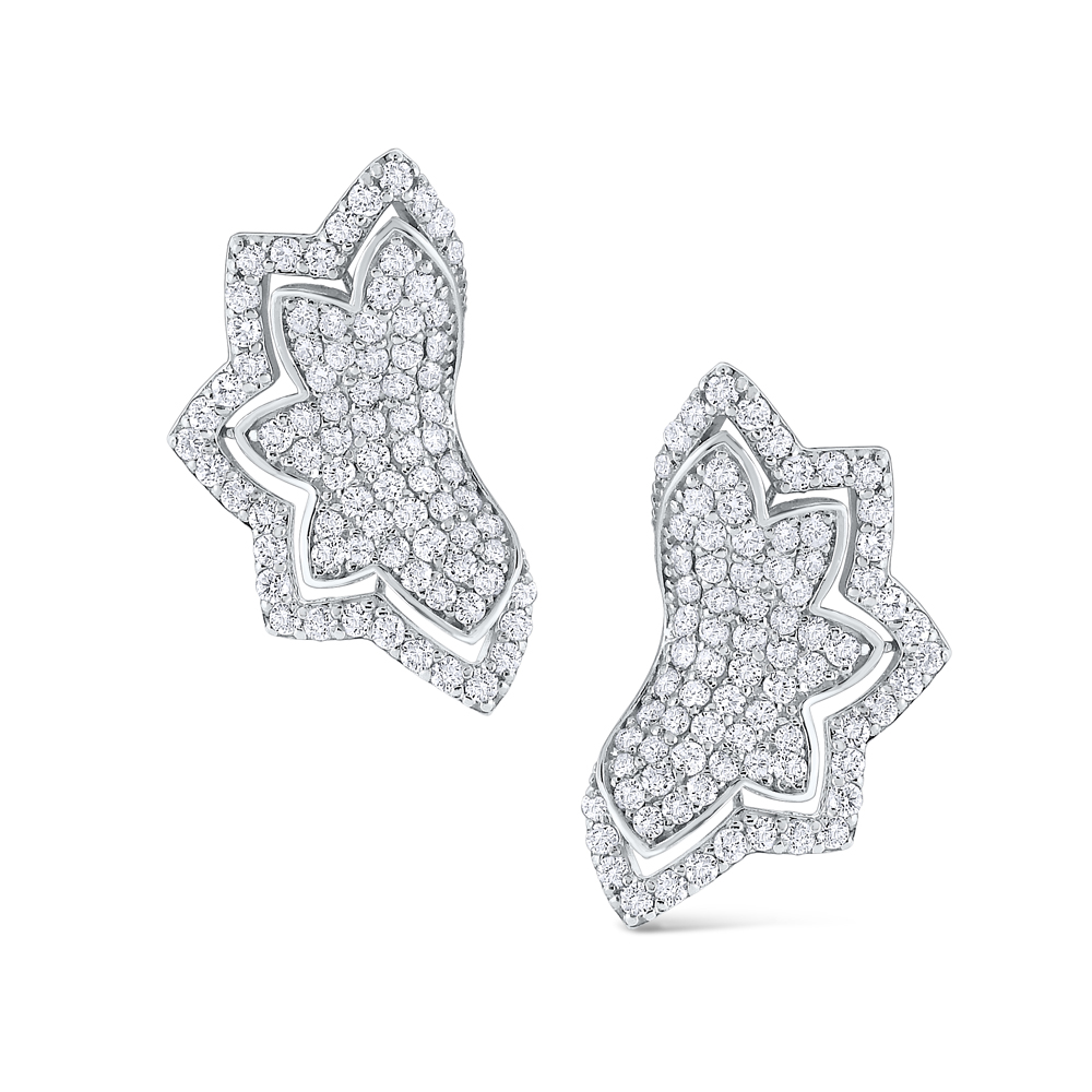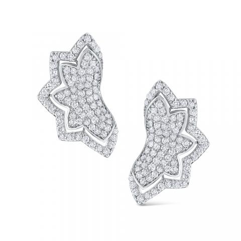 Diamond Half Flower Earrings Set in 14 Kt. Gold