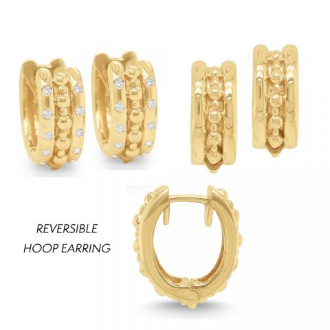 14k Gold and Diamond Reversible Oval Hoop Earring