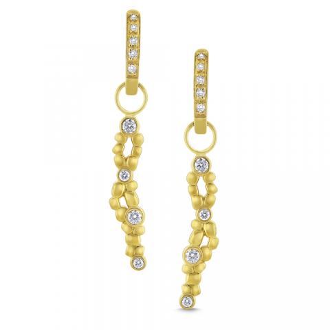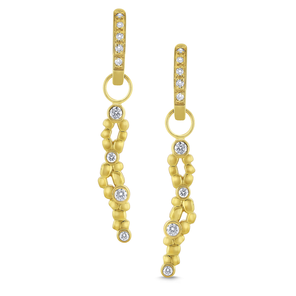 Glittering diamonds hang from an ear charm that almost resembles a double helix.