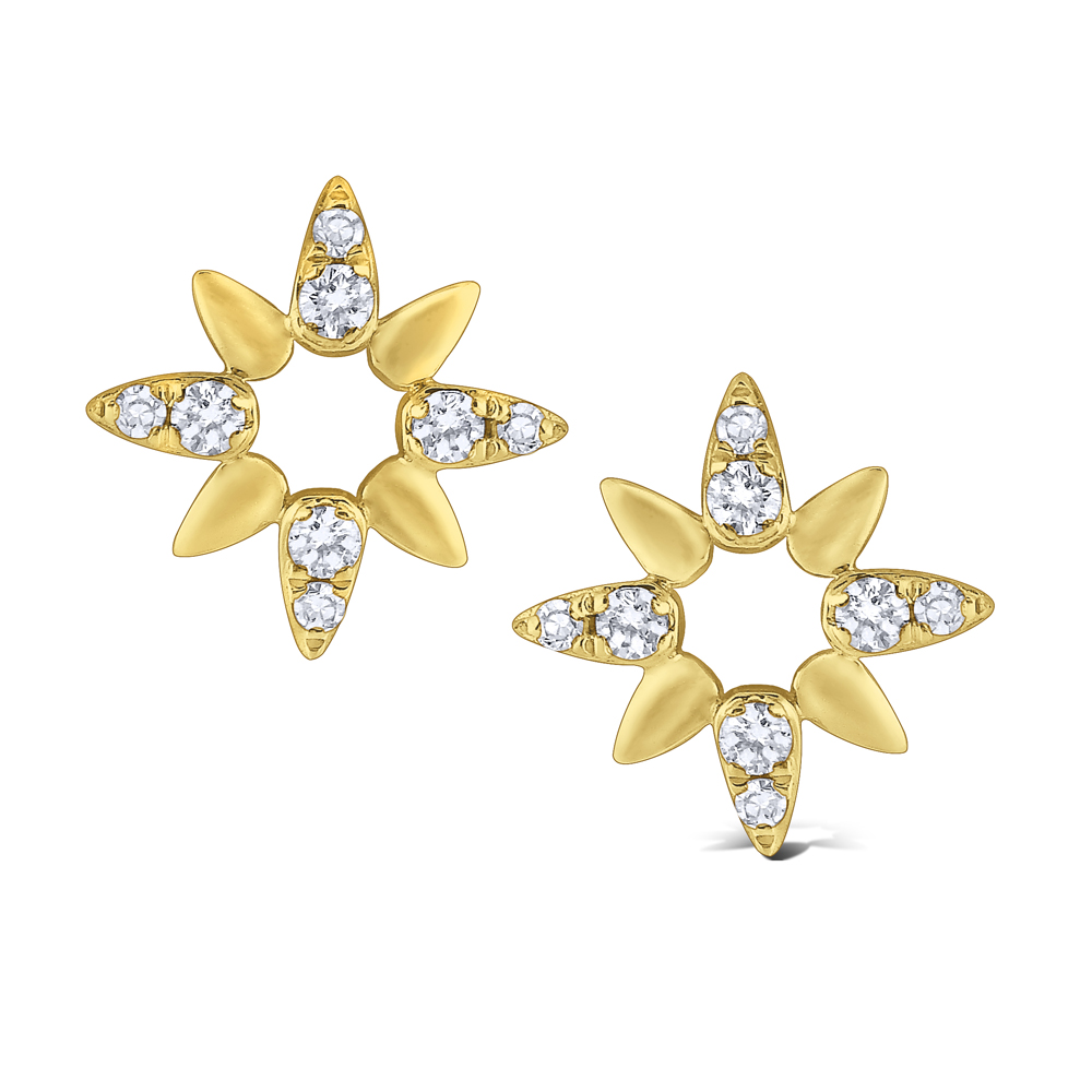 Shining 14 Kt. gold is off set with rays of glittering diamonds in these stylish star window studs.