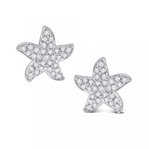 These lovely diamond starfish earrings are fun, creative, sweet and playful. They will evoke memories of strolling down the beach barefoot and looking for seashells and starfish in the tide pools. The 64 gleaming .14 ct tw diamonds on these charming earrings give them a glamorous and feminine touch.